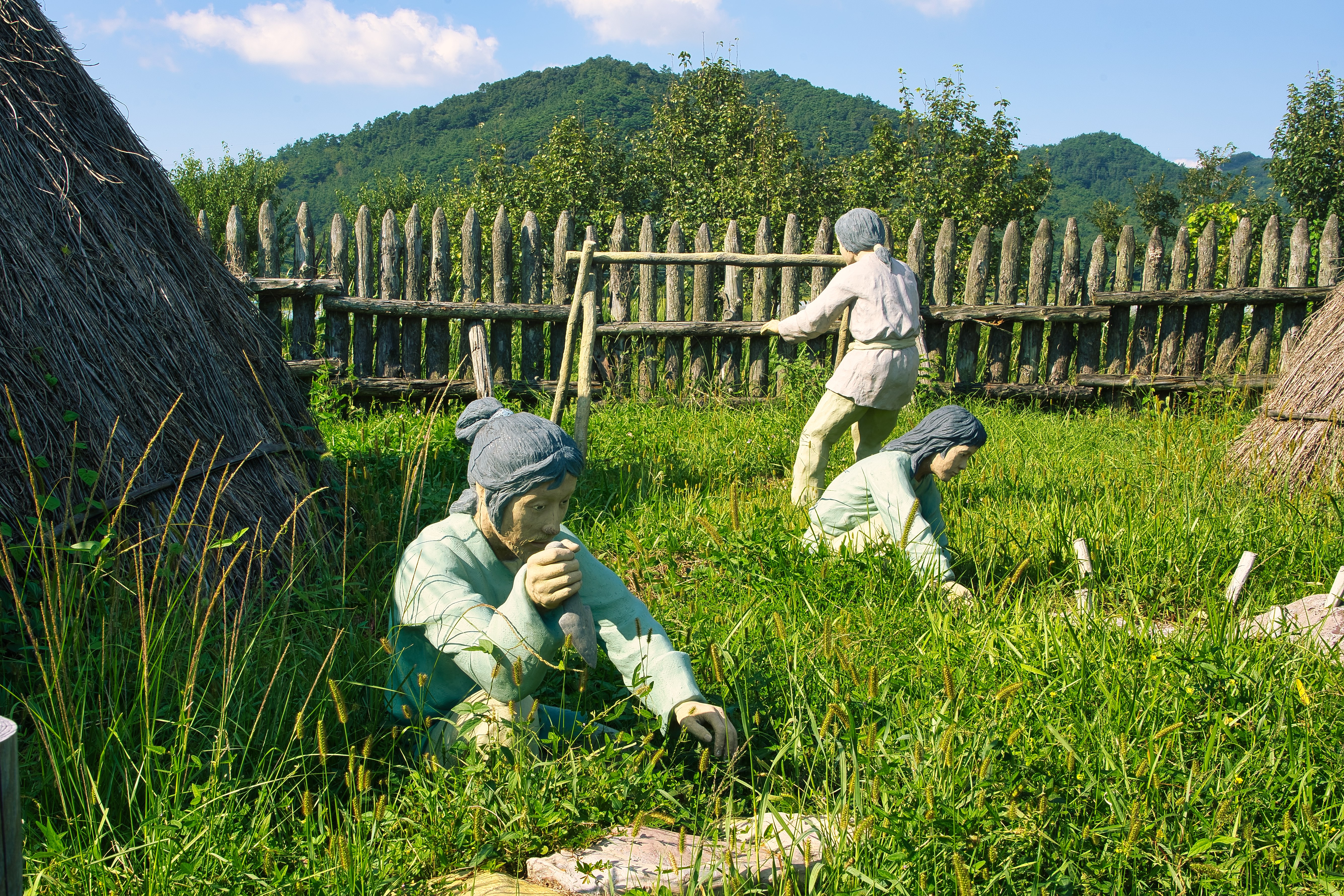 야외 전시장도 있는데요. 선사시대 사람들의 생활을 묘사한 전시물과 고인돌을 볼 수 있었습니다.